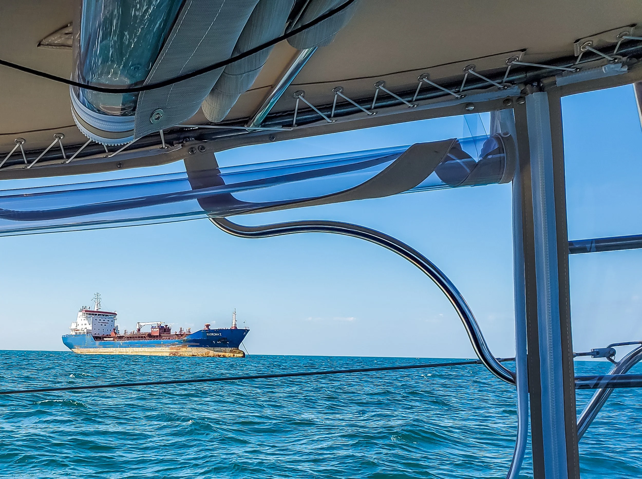 Passing a container ship at dawn, Chesapeake Bay