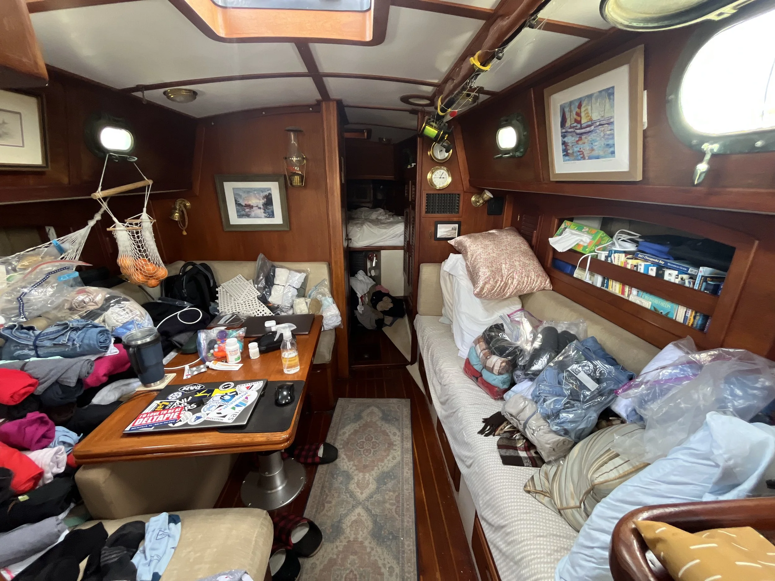 It took us weeks to clean out the mold from all the spaces we could reach. The spaces of the hull below the waterline were mold free, as they remained the same temperature as the water. The enclosed spaces in the accommodation areas were the worst. We had to throw out some clothes and fabric shopping bags damaged by mold. We even had several anti-mold prevention packets with mold all over them!